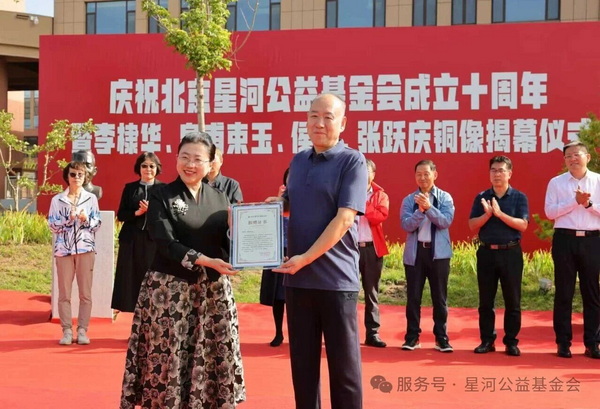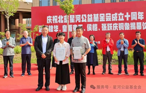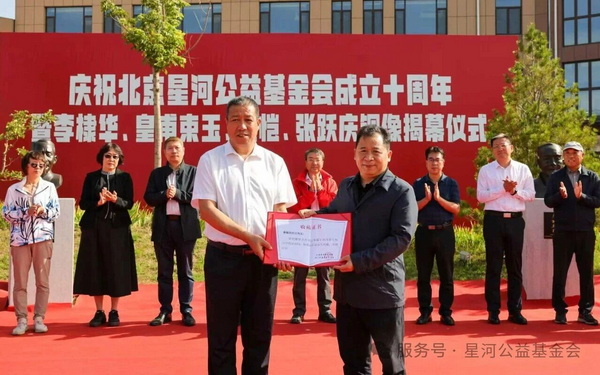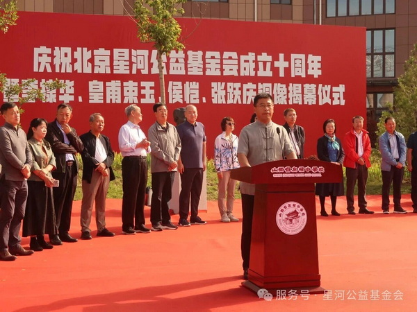 当日,在新落成的“星河园”内,北京星河公益基金会十周年庆典暨系列捐赠活动举行,四尊先贤铜像、育贤学校校门石匾、张跃庆先生著述手稿及“星河书屋”“张跃庆图书捐赠专架”系列捐赠暨揭幕仪式。