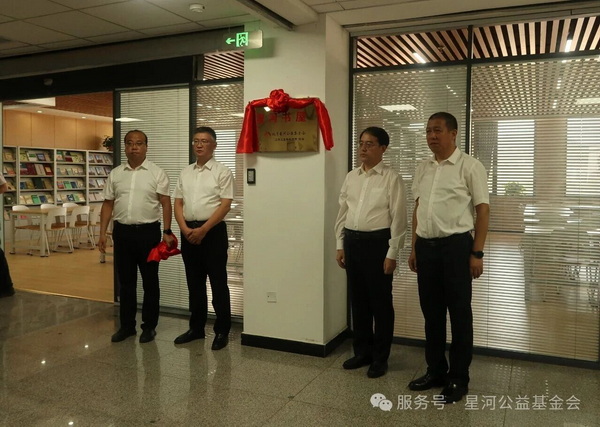 北京星河公益基金会理事李煜、监事王晋波、左权中学李瑞军书记、霍亚飞校长为“星河书屋”揭幕